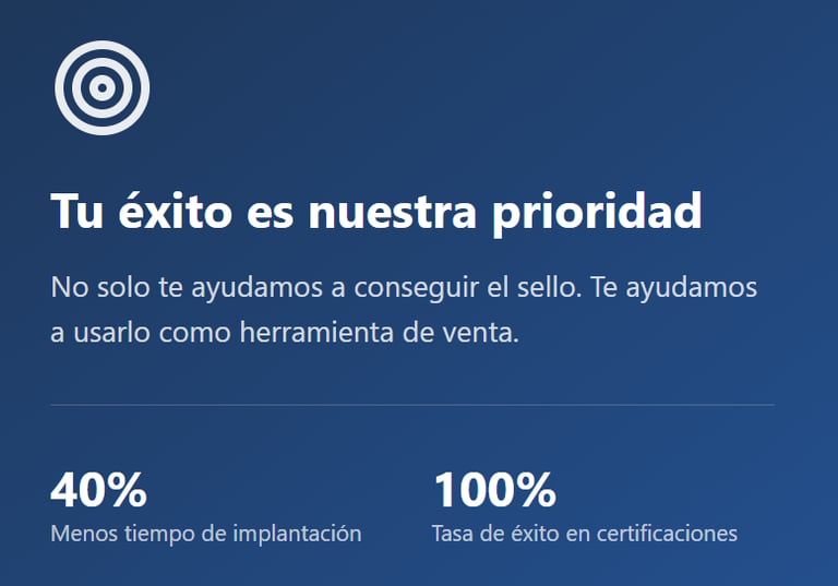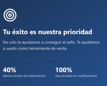 Garantizamos por contrato que pasarás la certificación. Si se detectan no conformidades, nuestro equipo trabajadrá contigo sin coste adicional hasta solventarlas y obtener el sello.