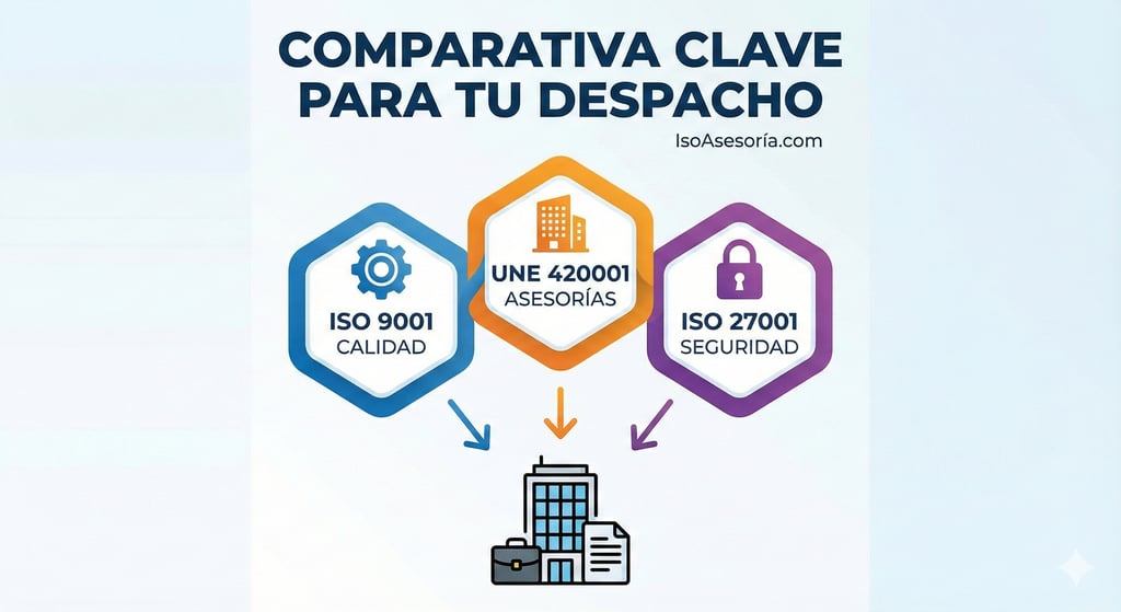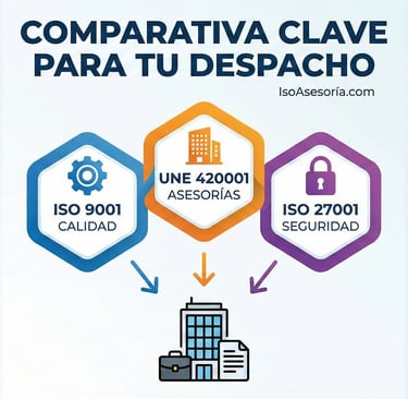 ISO 9001, UNE 420001 o ISO 27001: Guía Comparativa Definitiva para Asesorías y Despachos